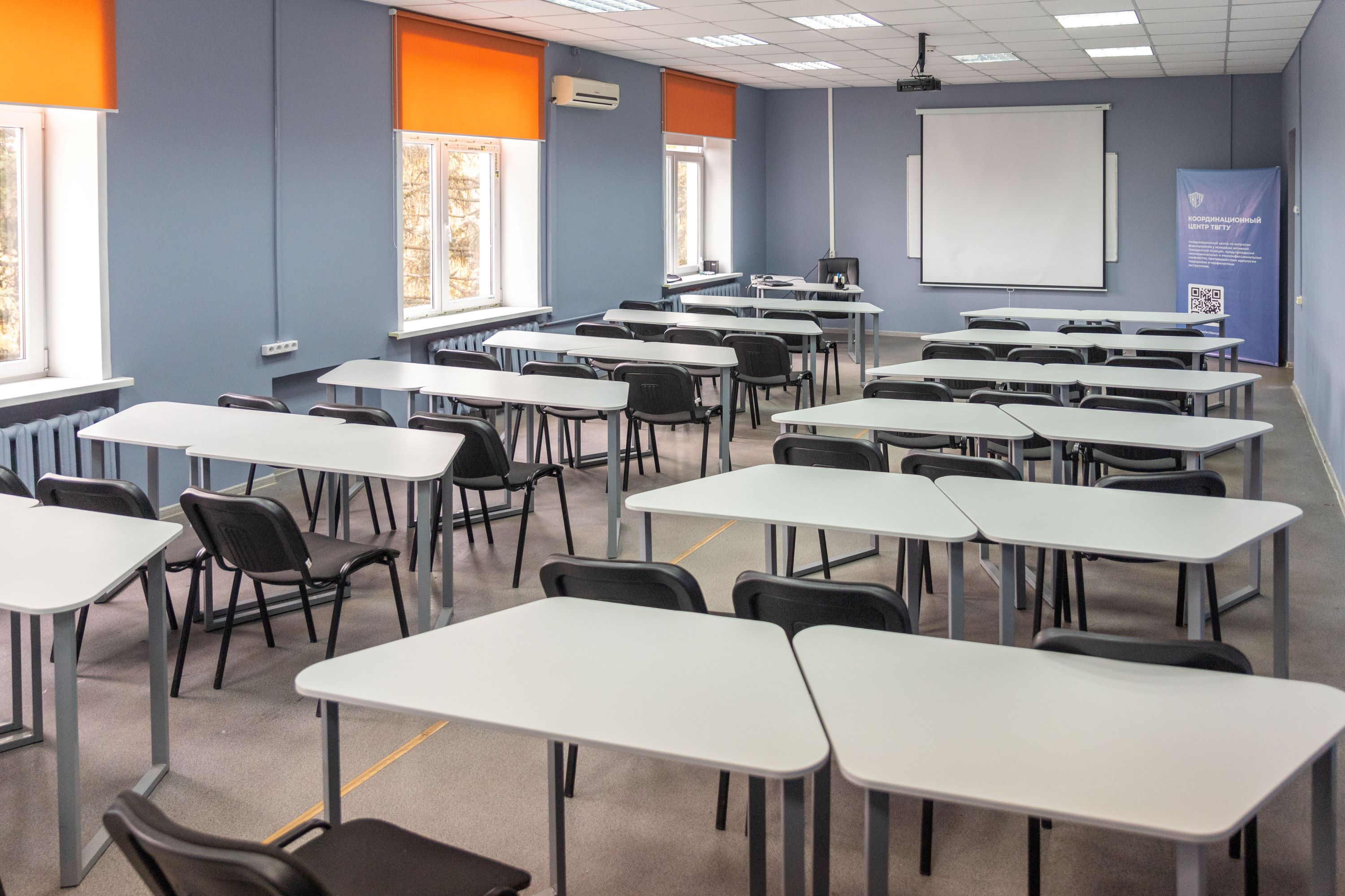 As salas são caracterizadas por um alto nível de conforto e equipamentos, criando condições ótimas para um processo educacional de qualidade. Cada sala está equipada com equipamentos modernos necessários para a realização de palestras, seminários e aulas práticas.