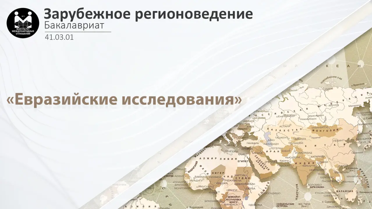 Программа «Зарубежное регионоведение» (специализация «Евразийские исследования») готовит экспертов-аналитиков по социально-политическому, экономическому и культурному развитию стран Евразии. Студенты изучают мировую и региональную экономику, международные отношения, право, политический анализ, маркетинг, бизнес-аналитику, логистику, межкультурную коммуникацию и иностранные языки, осваивают цифровые инструменты обработки данных и основы программирования. Подготовка ориентирована на экспертно-аналитическую деятельность в органах власти, международных организациях, бизнес-структурах, СМИ, научных и образовательных центрах.