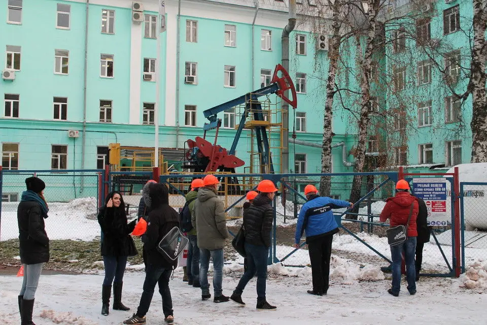 Уникальная практическая база для подготовки инженеров-нефтяников. Расположенный на территории университета, он моделирует реальные технологические процессы нефтегазодобычи. Студенты осваивают здесь оборудование для ремонта скважин, изучают талевую систему и другое профессиональное оснащение.