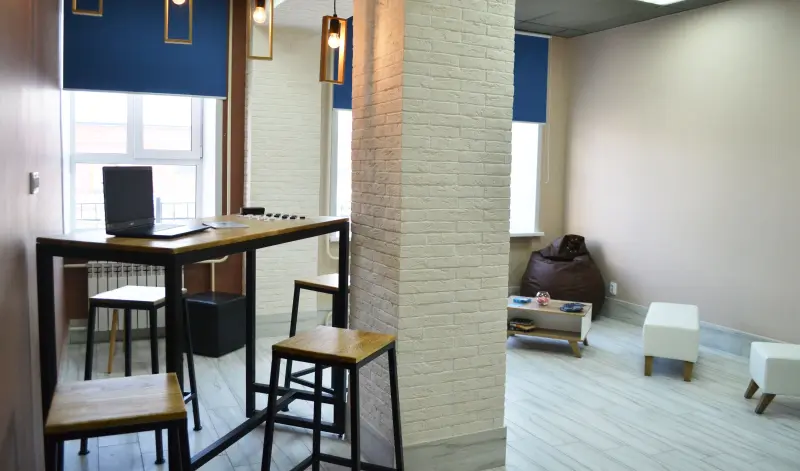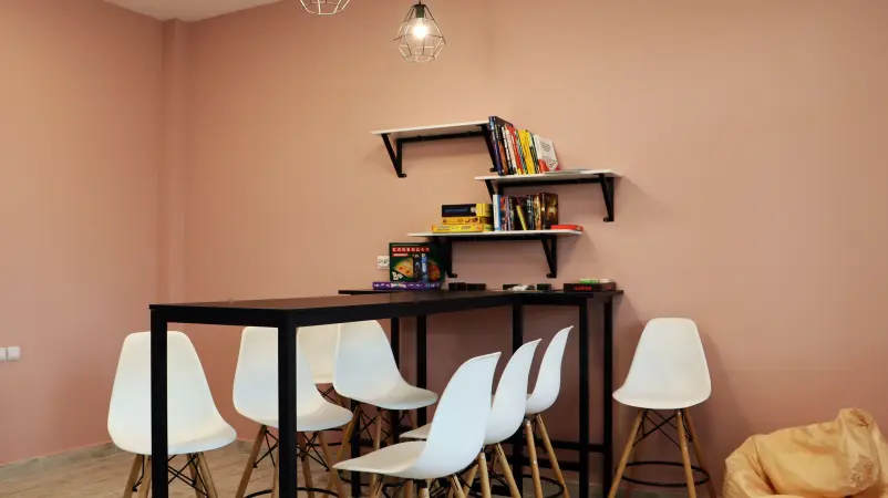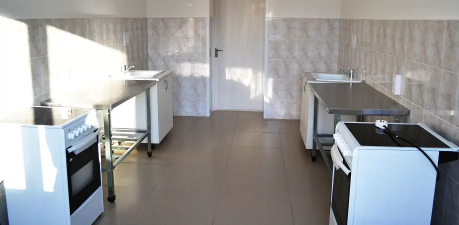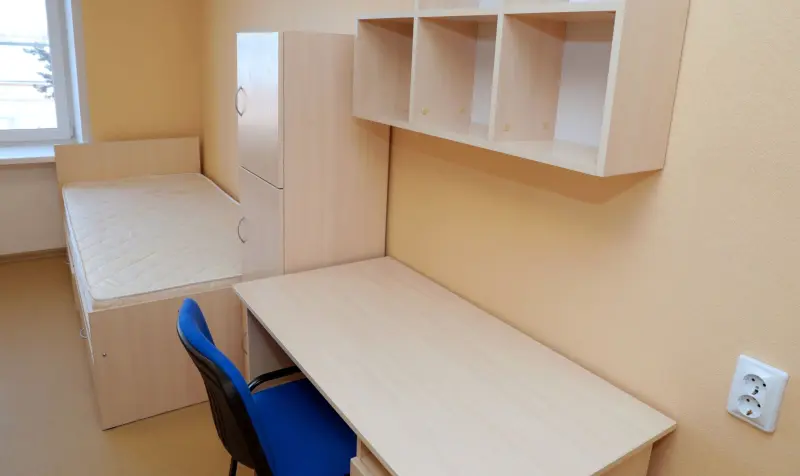 在入住时,每位居民都会获得生活用品:床、床头柜、椅子、床垫。每个居住空间都配有衣柜和书桌。每个隔间都设有淋浴间、洗手间和厕所。